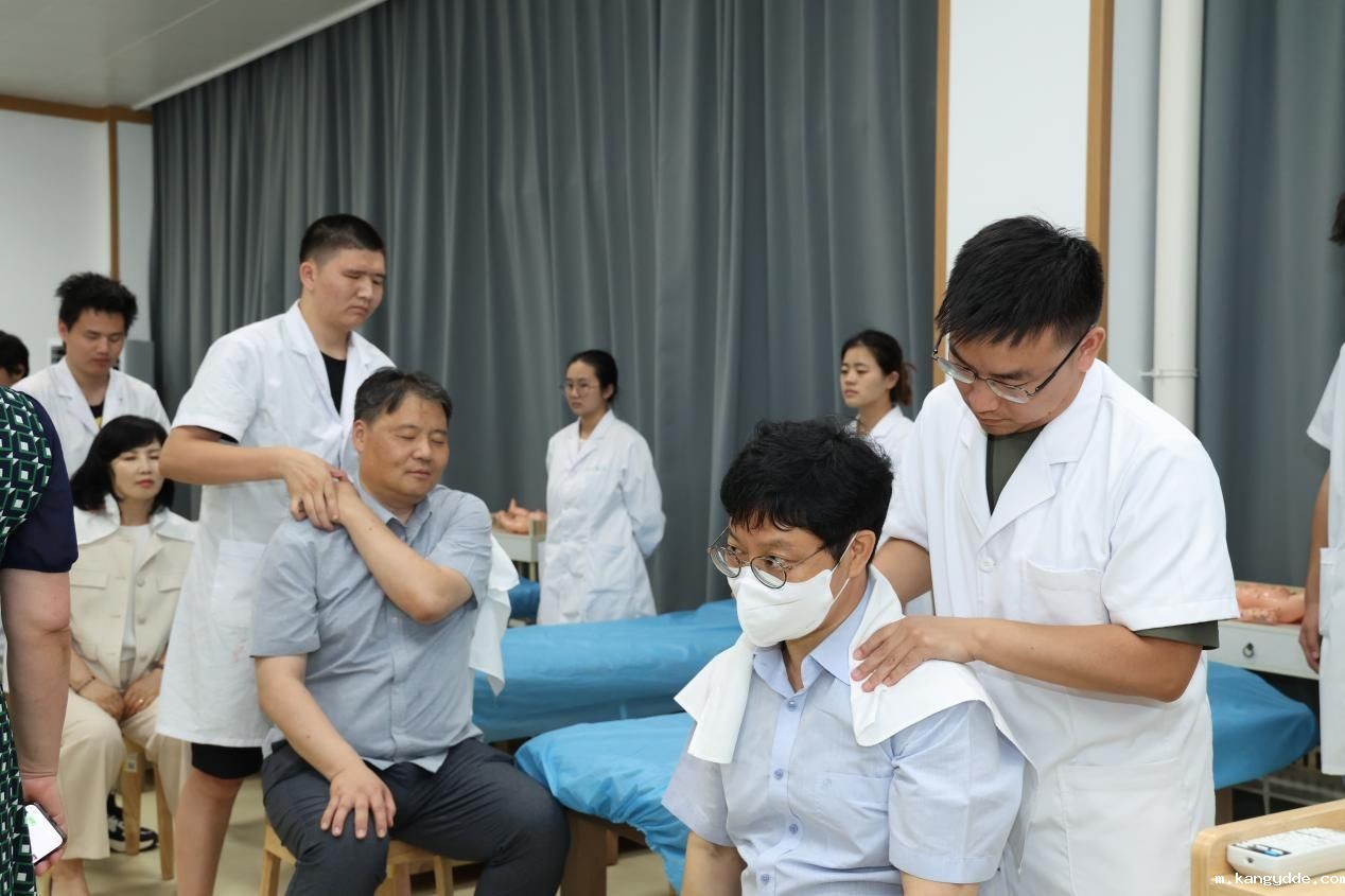 (教授团一行参与推拿体验)